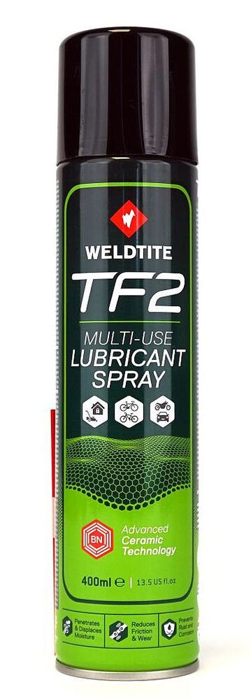 TF2 Multi-Use Spray is optimised with ceramic additives for outstanding lubrication and dirt repellent properties. The nano-technology smooths and lubricates imperfections on a microscopic level, reducing friction for smooth, noise free and long lasting performance.